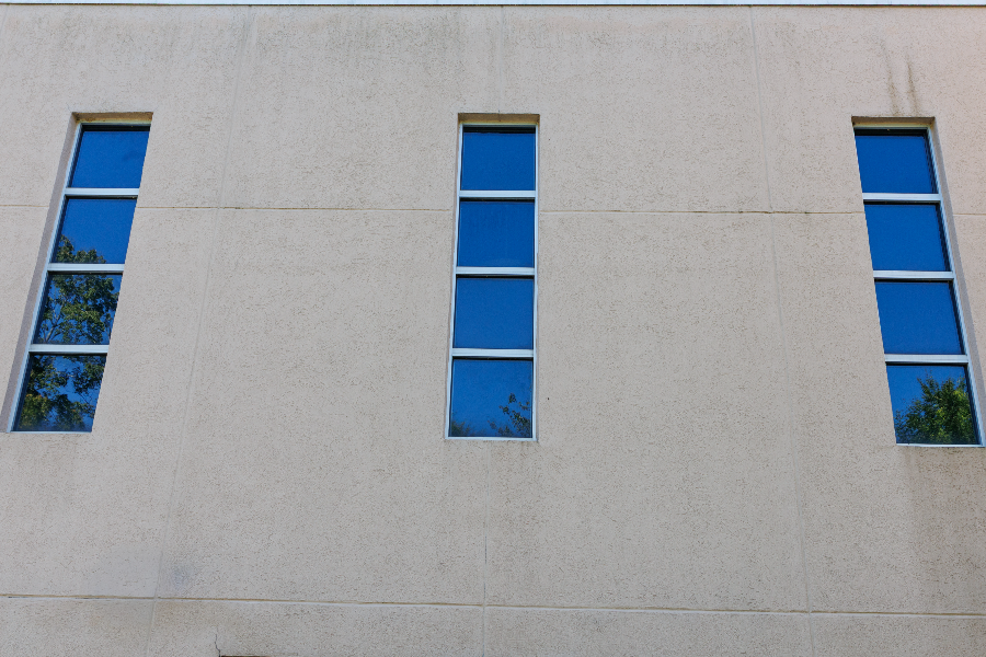 In addition to full window replacement on the main structure, we applied specialty security safety films to existing storefront-style windows in a newer section of the mosque, further improving security without full replacement.